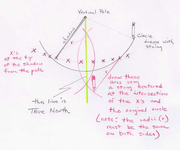 About every 10 minutes mark an additional x at the tip of the shadow. Do this until about 1 pm. By then, one of the x's should have touched the outline of your circle. This will be the X on the right